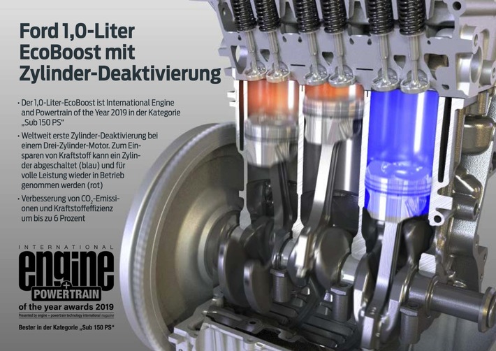 - 1,0-Liter-EcoBoost von Ford wurde als International Engine and Powertrain of the Year 2019 (IEPOTY) in der Kategorie "Sub-150 PS" ausgezeichnet