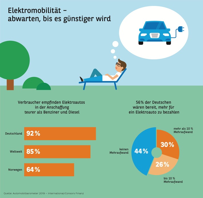 Elektromobilität – abwarten, bis es günstiger wird / Elektromobilität – abwarten, bis es günstiger wird. Weiterer Text über ots und www.presseportal.de/nr/78451 / Die Verwendung dieses Bildes ist für redaktionelle Zwecke honorarfrei. Veröffentlichung bitte unter Quellenangabe: „obs/Consors Finanz“