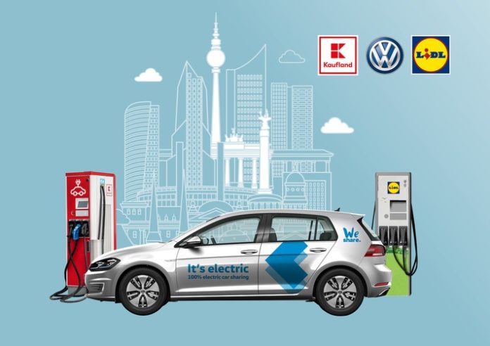 Lidl und Kaufland entwickeln ihre E-Mobilitätslösungen strategisch weiter und gehen mit der Kooperation im Rahmen des E-Carsharing-Programms WeShare von Volkswagen den nächsten Schritt: Die beiden Händler bauen ihre E-Ladeinfrastruktur in Berlin auf 70 Ladesäulen mit 140 Ladepunkten an den Lidl- und Kaufland-Filialen aus. Gleichzeitig steigt die effiziente Auslastung der Ladesäulen signifikant an. Tagsüber stehen die Ladesäulen Kunden zur Verfügung, Volkwagen nutzt die ausgebaute Infrastruktur außerhalb der Öffnungszeiten für das nächtliche Aufladen der WeShare-Flotte, die mit 1.500 e-Golf-Fahrzeugen startet und später um 500 e-Up!-Fahrzeuge wachsen wird. Die Kooperation startet Ende Juni, der Rollout der E-Ladesäulen in Berlin ist bereits gestartet. Insgesamt werden 60 Ladesäulen an Lidl-Filialen und zehn weitere an Kaufland-Märkten bereitgestellt. Der Strom aller Ladesäulen, überwiegend Schnelllader, stammt zu 100 Prozent aus erneuerbaren Energien.