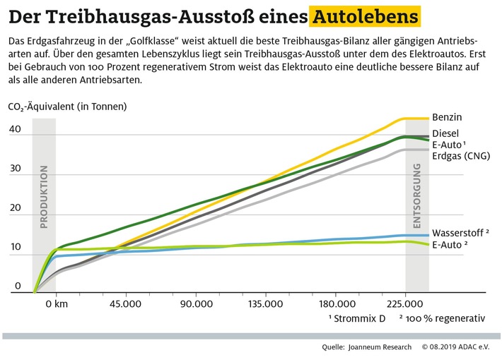 Das exzellente Abschneiden des Erdgasautos zeigt laut ADAC, wie gut konventionelle Antriebe in der Treibhausgas-Bilanz sein können. Würde sich der Anteil von Biomethan aus Abfall- und Reststoffen weiter erhöhen, könnte das Ergebnis noch besser ausfallen.