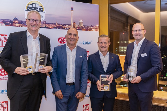 Frank Jürgens, Sprecher der Geschäftsführung SKODA AUTO Deutschland, Tom Drechsler, Chefredakteur AUTO der BILD-Gruppe, Thomas Peckruhn, Vorsitzender des Verbands Deutscher SKODA Vertragspartner, und Uwe Ungeheuer, Leiter Marketing SKODA AUTO Deutschland, zusammen mit den Auszeichnungen (v.l.n.r.). Fotocredit: Olaf Itrich / Auto Bild / Weiterer Text über ots und www.presseportal.de/nr/28249 / Die Verwendung dieses Bildes ist für redaktionelle Zwecke honorarfrei. Veröffentlichung bitte unter Quellenangabe: “obs/Skoda Auto Deutschland GmbH/Olaf Itrich / Auto Bild”