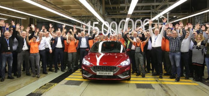 Fast 50 Jahre nachdem im Januar 1970 der erste Ford Escort in Saarlouis vom Band lief, hat das Ford-Werk die 15-Millionen-Marke geknackt. Der ruby-rote Ford Focus ST, der als 15-millionstes Ford-Modell ‘made in Saarlouis’ das Werk verlässt, bringt mit seinem 2,3-Liter-Ecoboost-Motor 280 PS auf die Straße. Er gehört zur vierten Ford Focus-Generation, die seit Mai 2018 – wie auch alle Focus-Baureihen vorher – in Saarlouis produziert wird.