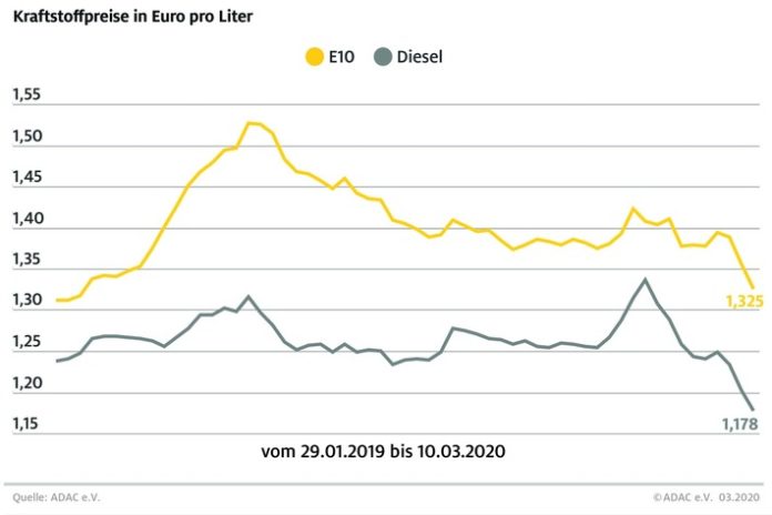 Auswertung des ADAC kostet ein Liter Super E10 im Bundesmittel 1,325 Euro, das