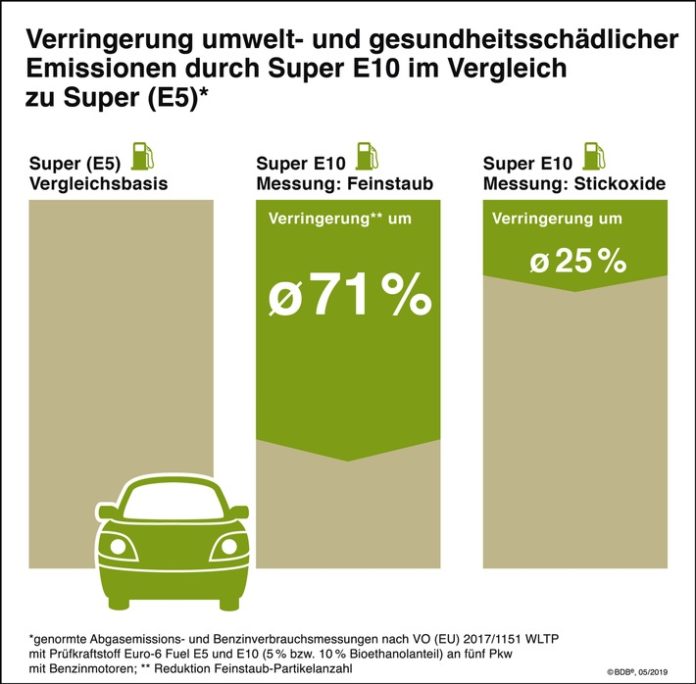 die Tatsache, dass Bioethanol deutlich partikelärmer als rein fossiles Benzin