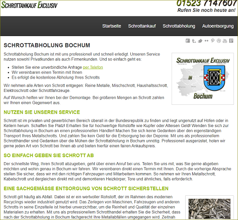 Kostenlose Schrottabholung in Bochum und Umgebung für Privathaushalte und Gewerbetreibende von Schrottankauf Exclusiv