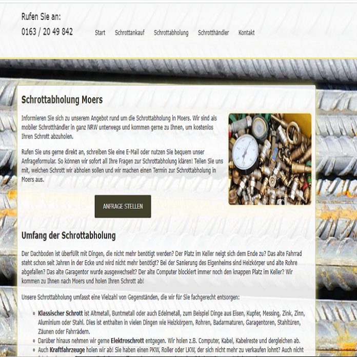 Die Rückgewinnung der im Altmetall enthaltenen Materialien ist ein wichtiger Beitrag zum Schutz der Ressourcen. Aber er ist darüber hinaus ein Wirtschaftsfaktor, da diese Materialien werden aufgrund ihres Wertes gehandelt werden. Dieser Handel ist letztendlich das Geschäftsfeld der Schrottabholung Moers, weshalb die Kunden die Möglichkeit haben, sich unter Angabe der Art und Menge des Schrotts ein Angebot für den Altmetall-Ankauf einzuholen. Dies gilt für Privat- wie für Geschäftsleute gleichermaßen. Dieses Angebot wird unter Berücksichtigung der aktuellen Kurse erstellt. Sortenreiner Schrott ist grundsätzlich teurer als Mischschrott. In jedem Fall kann mit dem Schrott vom Kunden auf einfachste Art und Weise ein finanzieller Gewinn erwirtschaftet werden. Die Schrottabholung Moers hat sich in diesem Geschäftsfeld aufgrund ihrer fairen Abwicklung seit Langem einen guten Ruf in Moers und Umgebung erwerben können.