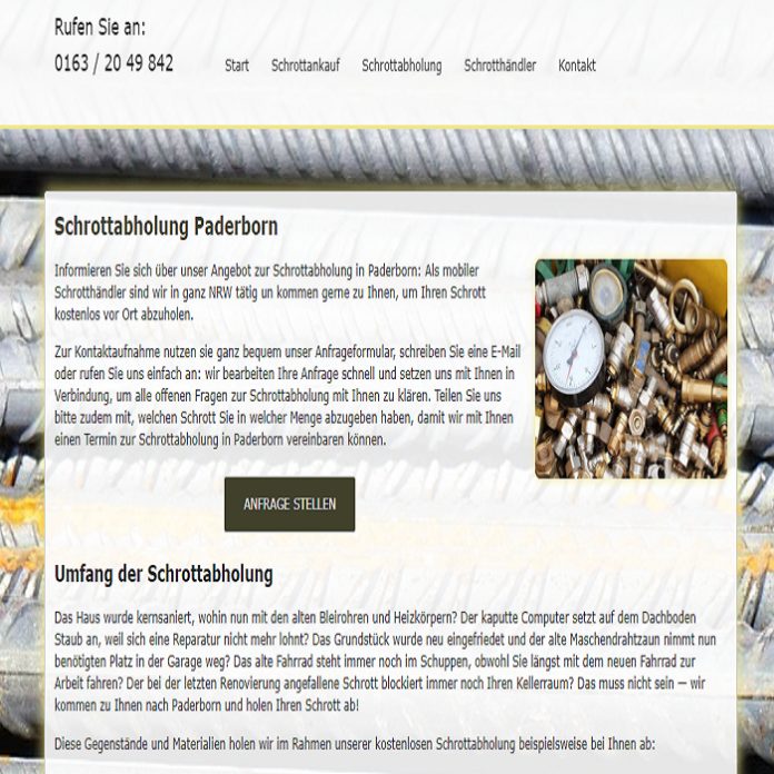Die Schrottabholung Paderborn bietet ihren Kunden eine kostenlose Schrottabholung an