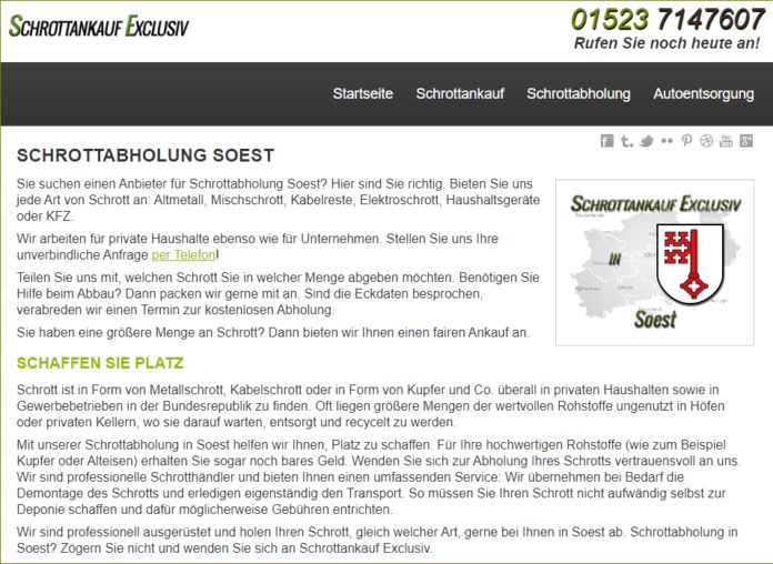 Mit der kostenlosen Schrottabholung in Soest von Schrottankauf Exclusiv werden Sie bequem Ihren Schrott los, können noch mit einem netten Verdienst rechnen und tun etwas Gutes für die Umwelt.