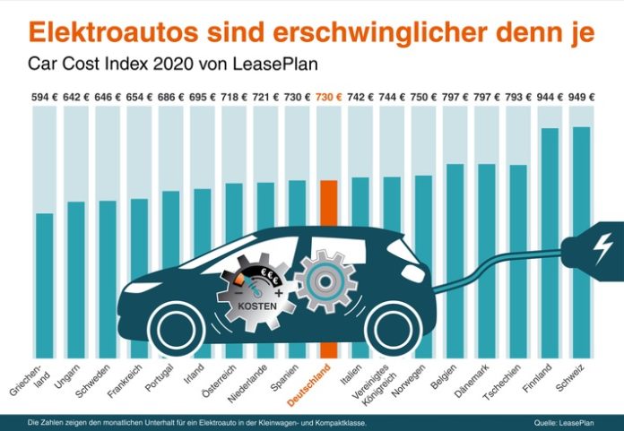 ElektromobilitätCar Cost Index 2020 von LeasePlan: Elektroautos sind erschwinglicher...