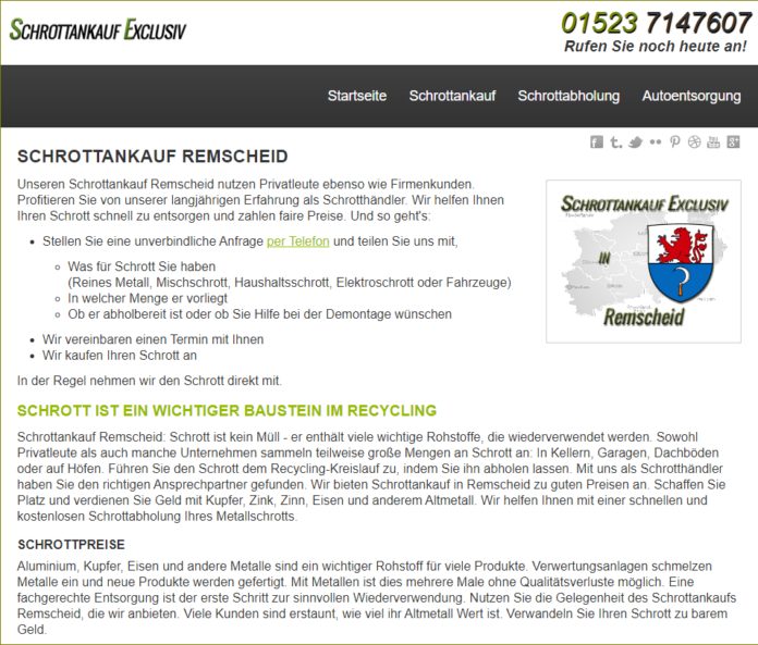 Schrottankauf Remscheid – durch mobilen, sachgerechten Service alten Schrott recyceln – für Privat und Gewerbe