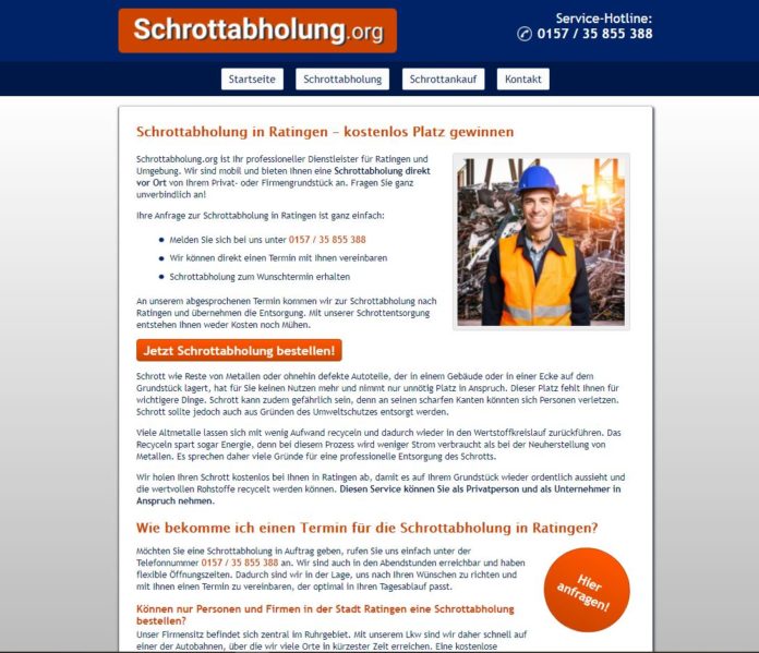 Privat oder in Unternehmen – beim Umbau, einer Renovierung oder Sanierung fällt oftmals Schrott an. Mit dem Angebot einer Schrottabholung in Ratingen durch den Anbieter Schrottabholung.org ist dies einfach möglich. Dieser vereinbart einen Termin mit seinen Kunden und holt die zu entsorgenden Dinge ab: Regale, Rohre, Tore, Zäune. Dies ist wesentlich leichter als eine eigene Entsorgung. Denn ein professioneller Entsorger hat entsprechende Fahrzeuge und Mitarbeiter für den Abtransport. Der Weg zum Schrottplatz oder Wertstoffhof wird ebenfalls gespart.