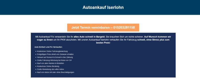 Der Gebrauchtwagen Ankauf gestaltet sich in Iserlohn sowie den Nachbarstädten denkbar einfach. Einen ersten Überblick über den Wert seines Fahrzeugs kann sich der Besitzer bereits online verschaffen. Entscheidet er sich, ein Angebot vom Autoankauf Iserlohn anzufragen, genügt ein Anruf oder eine kurze Nachricht. Nun wird kurzfristig ein Termin zur Inaugenscheinnahme vereinbart, wobei sich der Autoankauf Iserlohn nach den Wünschen des Verkäufers richtet.