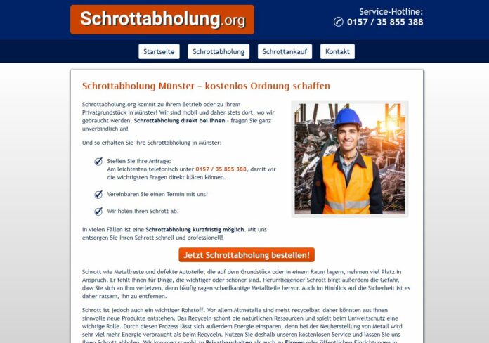 Die Schrottabholung sammelt haushaltsüblichen Schrott im gesamten Stadtgebiet und dem Umland von Münster, um es dem Recycling zuzuführen