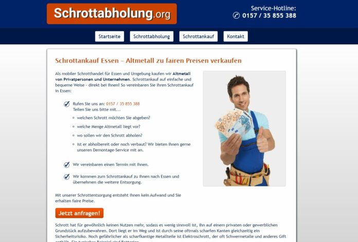 Mit einer Anfrage beim Anbieter Schrottabholung.org erfahren Kunden, welche Schrottpreise sie erzielen können.