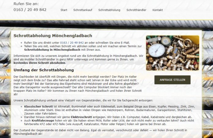 - Schrottabholung Mönchengladbach holt ihre Altmetalle und Eisenschrott schnell und zuverlässig