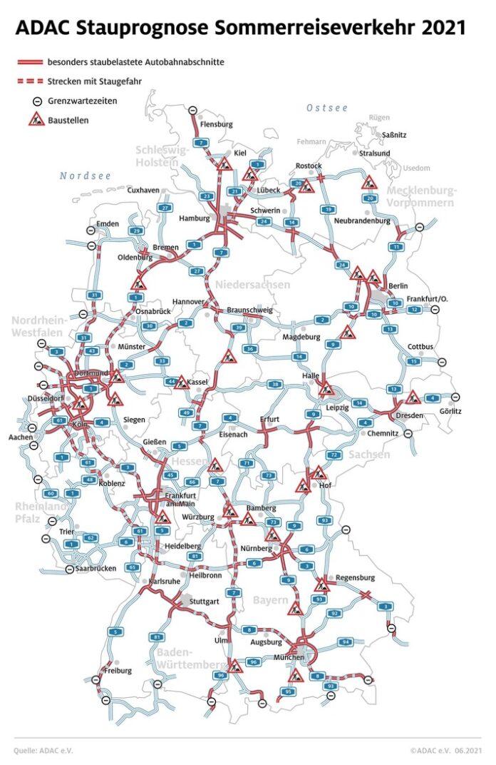 München (ots) – Am dritten Juli-Wochenende brauchen Autofahrer auf Deutschlands Autobahnen ganz besonders viel Geduld. Die Fernstraßen in Richtung Sommerurlaub sind jetzt häufig überlastet. Unter den Reisenden sind viele Urlauber aus Hessen, Rheinland-Pfalz, dem Saarland und der Mitte der Niederlande, wo jetzt die Ferien beginnen. Aus dem Norden der Niederlande und aus Frankreich rollt die zweite, aus Nordrhein-Westfalen die dritte Reisewelle. In neun deutschen Bundesländern und den meisten Nachbarländern sind die Schulen schon geschlossen.