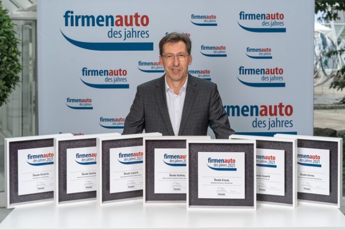 ŠKODA stellt gleich sieben Sieger bei der Wahl ‚Firmenauto des Jahres 2021‘. ŠKODA OCTAVIA (Kompaktklasse), ŠKODA SUPERB (Mittelklasse), ŠKODA SUPERB iV (Plug-in-Hybride Mittelklasse), ŠKODA KAMIQ (Kleine SUV und Crossover), ŠKODA KAROQ (Kompakte SUV und Crossover), ŠKODA KODIAQ (Midsize-SUV und Crossover) sowie der rein elektrische ŠKODA ENYAQ iV (Mittelgroße Elektroautos) gewinnen jeweils die Importwertung ihres Segments.