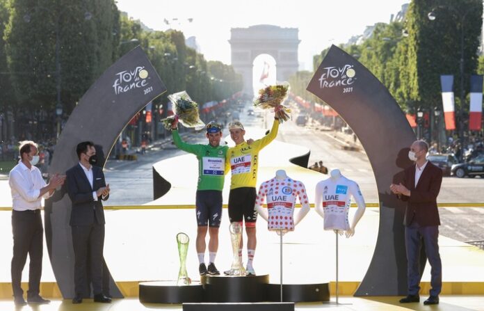 › Slowene Tadej Pogačar nimmt in Paris die Trophäe für den Gesamtsieg entgegen