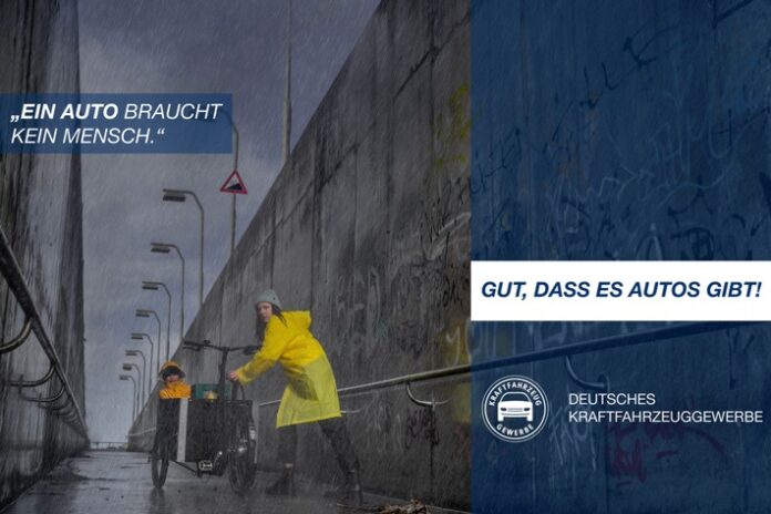 „Gut, dass es Autos gibt!“ – Mit dieser Botschaft startet eine neue Social Media-Kampagne, mit der das Deutsche Kraftfahrzeuggewerbe die Bedeutung des Automobils als unverzichtbaren Baustein der individuellen Mobilität unterstreicht. Die Kampagne zeigt Situationen aus dem Lebensalltag, deren Bewältigung ohne Auto zu einer Herausforderung wird. „Mit unserer Botschaft und den Bildmotiven wollen wir durchaus provokativ darauf hinweisen, dass für viele Menschen der Alltag ohne Auto gar nicht darstellbar ist“, betont ZDK-Präsident Jürgen Karpinski. „Aus unserer Sicht ist es der falsche Weg, die individuelle Mobilität mit dem Auto etwa in Städten zu erschweren, indem Straßen- und Parkräume verknappt werden und fragwürdige Tempolimits für Stillstand sorgen.“