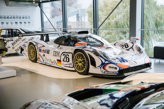 911 GT1 1998 – Das ausgestellte Exponat ist ein Stellvertreter des Originalfahrzeugs. Nach einem Trainingsunfall im Oktober 1998 in Homestead, USA, wurde das Ausstellungsfahrzeug auf das Aussehen des Le-Mans-Siegers 1998 umgebaut. Technisch entspricht der Rennwagen dem in Le Mans siegreichen 911 GT1 ’98 – damit verfügt das Fahrzeug ebenso über das erste bei Porsche entstandene Kohlefaserchassis und die erstmals von Porsche verwendeten Kohlefaserbremsen. Ebenfalls ein Novum ist die sequenzielle Schaltung des Sechsganggetriebes.