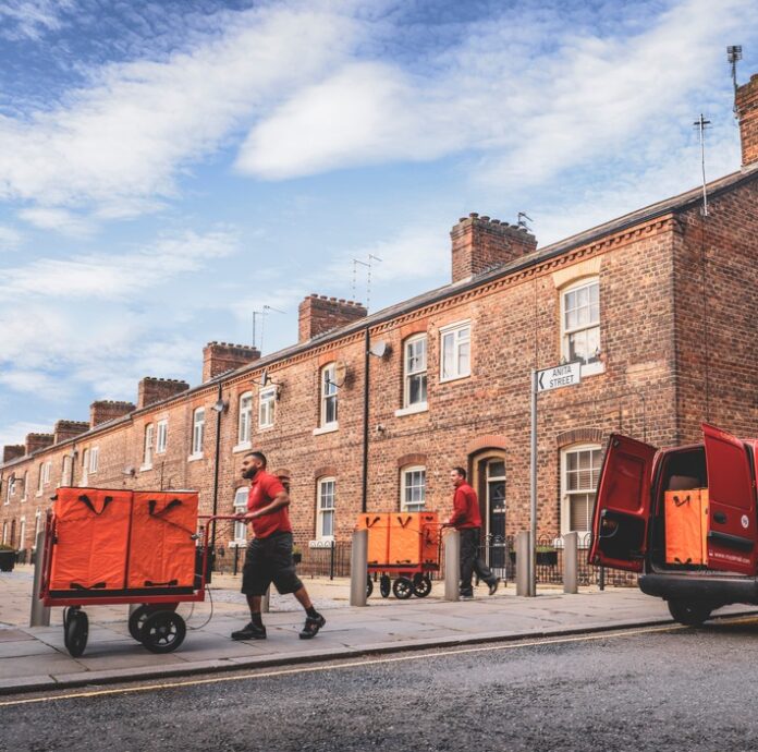 Speziell angefertigte Paket-Trolleys ermöglichten mehr Auslieferungen zu Fuß. Bei dem Feldversuch konnte die Anzahl erforderlicher Transportfahrzeuge reduziert werden