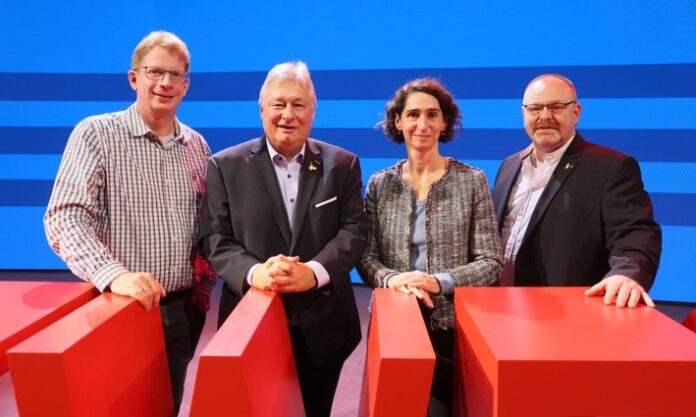 Neu gewählter EVG-Vorstand (von links nach rechts): Kristian Loroch, Martin Burkert, Cosima Ingenschay, Frank Hauenstein / Weiterer Text über ots und www.presseportal.de/nr/150063 / Die Verwendung dieses Bildes für redaktionelle Zwecke ist unter Beachtung aller mitgeteilten Nutzungsbedingungen zulässig und dann auch honorarfrei. Veröffentlichung ausschließlich mit Bildrechte-Hinweis. Bildrechte: EVG Eisenbahn- und Verkehrsgewerkschaft Fotograf EVG