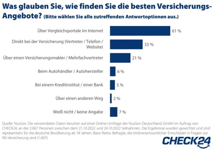 Was glauben Sie, wie finden Sie die besten Versicherungs-Angebote? (Bitte wählen Sie alle zutreffenden Antwortoptionen aus.)