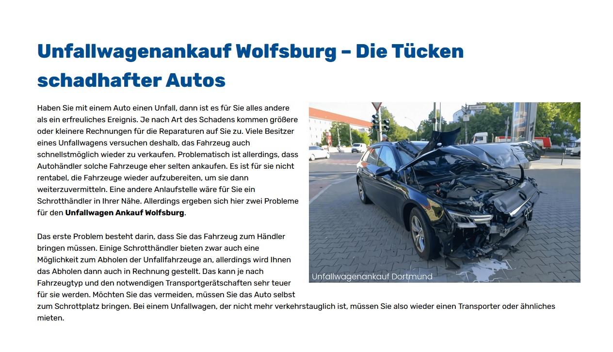 Ihren Unfallauto in Wolfsburg verkaufen Sie am besten an einen Experten an auto-ankauf-24.de