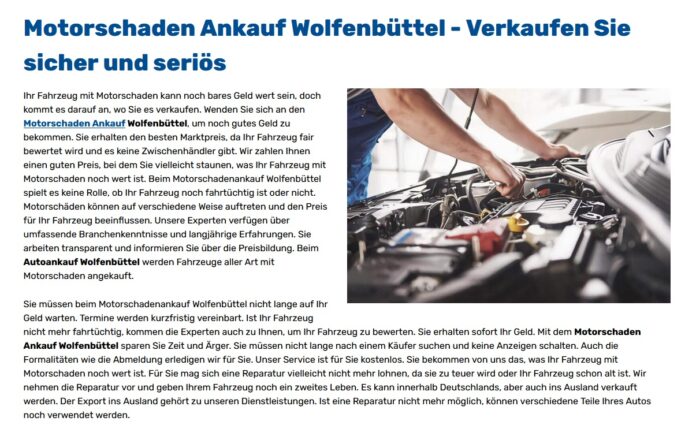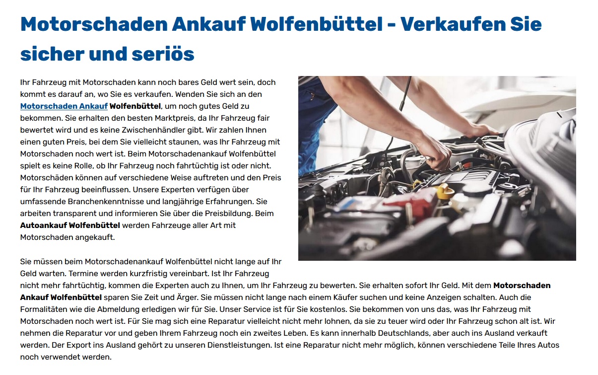 Ihr kompetenter Partner Auto-ankauf-24.de bei Ankauf von Autos mit Motorschaden Wolfenbüttel