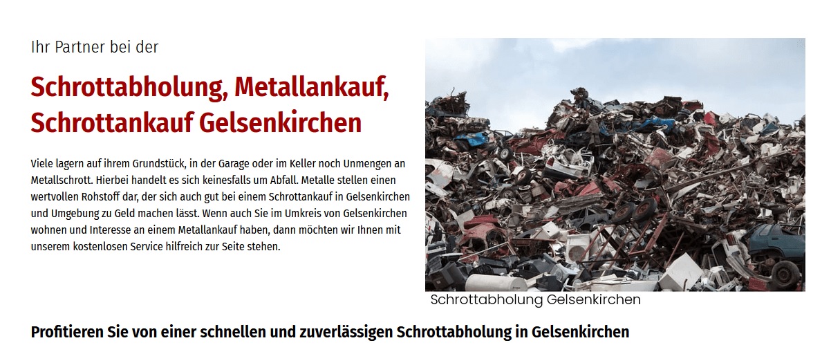 Schrotthändler in Gelsenkirchen gesucht? Wir holen Schrott kostenlos in Gelsenkirchen ab.