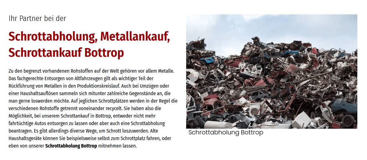 Schrottabholung Bottrop: ☆ schnell und unkompliziert ☆ für Privat & Gewerbe durch Schrottabholung-Nrw24.de