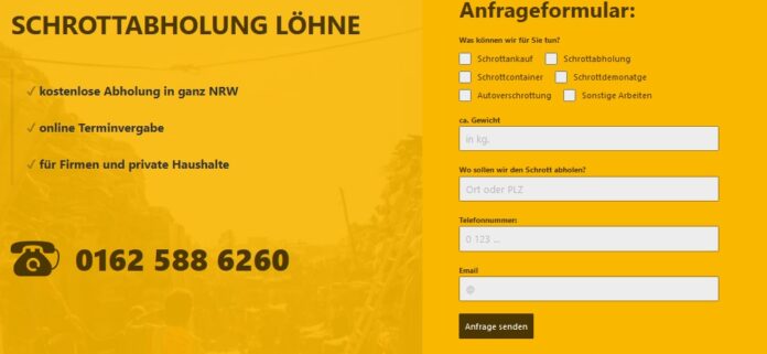Schrottabholung Lüdenscheid – mobiler Schrotthändler inkl. Abholung. Der Schrottankauf Luedenscheid ist nicht nur für seine fairen Konditionen bekannt, sondern auch dafür, die Kunden, die ihren Schrott verkaufen möchten, mittels Barzahlung zu entlohnen. Um in den Genuss dieser gerade in der aktuellen Situation begehrten, das Einkommen ergänzenden, Barzahlung zu gelangen, reicht ein Anruf beim Schrottankauf Luedenscheid. Gemeinsam wird Art und Menge des abzuholenden Schrotts überschlagen und der Schrotthändler kann bereits in diesem Augenblick eine grobe Preisangabe für den Ankauf abgeben. In diesem Moment ist dieses Angebot noch unverbindlich, da der Schrotthändler sich natürlich vor Ort einen genauen Überblick über Art und Menge des Schrotts verschaffen muss. Außerdem wird Schrott an der Börse gehandelt und unterliegt somit tagesaktuellen Schwankungen. Der Kunde erhält am Ende also die am Tag der Abgabe geltenden Kurse. Nachdem ein entsprechender Termin vereinbart wurde, ist der Aufwand für den Kunden, der seinen Schrott verkaufen möchte, auch schon erledigt.