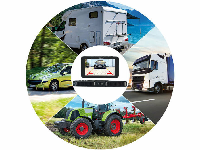– Rückfahrkamera PA-600 mit integriertem Solarpanel inklusive Monitor mit Saugnapf-Halterung,