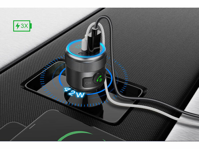 – Überträgt Musik kabellos als FM-Signal aufs Autoradio