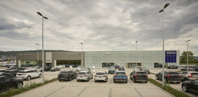 Das Autohaus Geisser präsentiert mit dem Gebäude auf neuen, großzügigen Ausstellungsflächen Fahrzeuge der Marken Volvo, Jaguar und Land Rover – und das mit großer Begeisterung. „Wir fühlen uns an unserem neuen Standort in Leimen rundum wohl und freuen uns, unsere Kundinnen und Kunden auch hier mit einer großen Modellauswahl und unserer automobilen Leidenschaft zu überzeugen“, sagt Stefan Geisser, Bauherr und Geschäftsführer der Autohausgruppe, anlässlich der Einweihung.