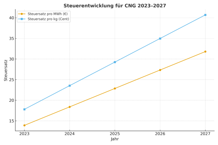 CNG (Compressed Natural Gas) gilt als alternativer Kraftstoff, der den CO₂-Ausstoß gegenüber Benzin und Diesel deutlich reduziert. Um den Umstieg attraktiver zu machen, hat der Gesetzgeber eine Energiesteuervergünstigung für Erdgas eingeführt, die ursprünglich bis 2026 befristet ist.